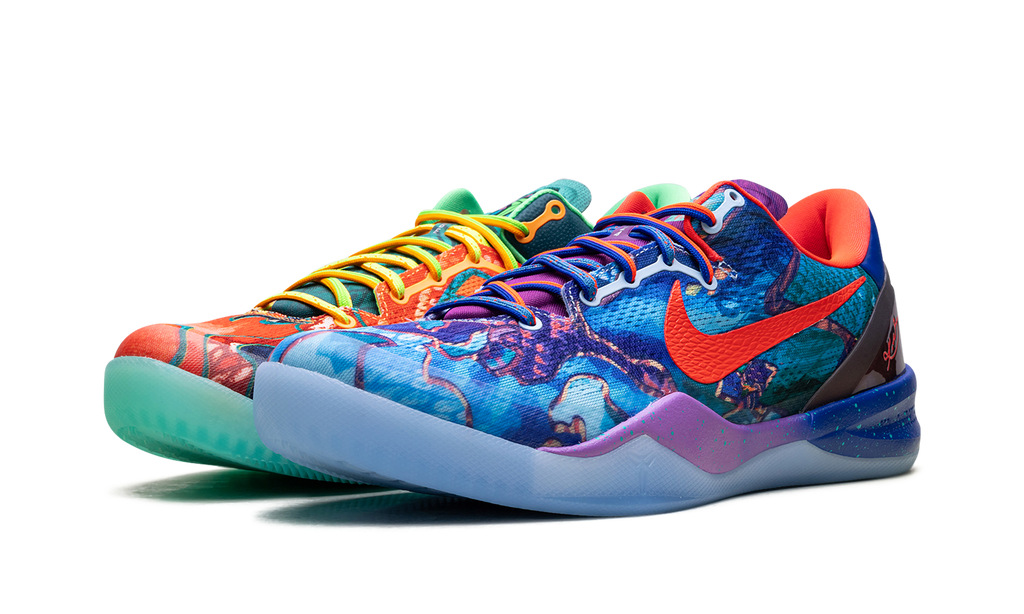 “A bold fusion of iconic colorways, the Nike Kobe 8 Protro “”What The”” celebrates the Mamba legacy with unmatched style. The “”What The”” colorway brings together some of the most renowned Kobe 8 colorways in the Los Angeles Lakers star’s legacy. This sneaker delivers top-tier performance and eye-catching appeal. “