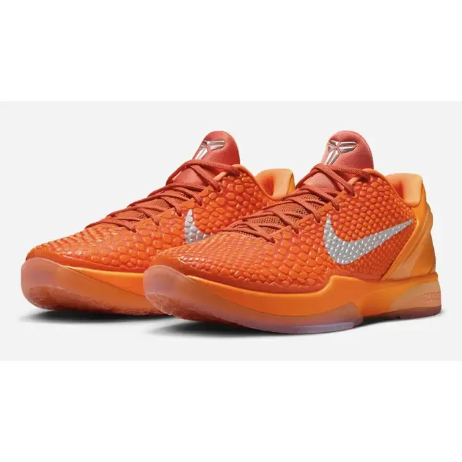 This Kobe 6 Protro honours Kobe’s passion for women’s basketball. Channelling the Mamba, the Total Orange and Cosmic Clay shoe features an iconic snakeskin-textured upper. Metallic Silver accents combine with a translucent outsole for an icy finish.
